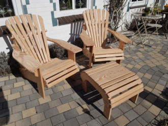 Set 1, Angebot 549,-€ Das Komplett-Set besteht aus 2 Stühlen sowie eine Fußbank die auch als Beistelltisch benutzt werden kann